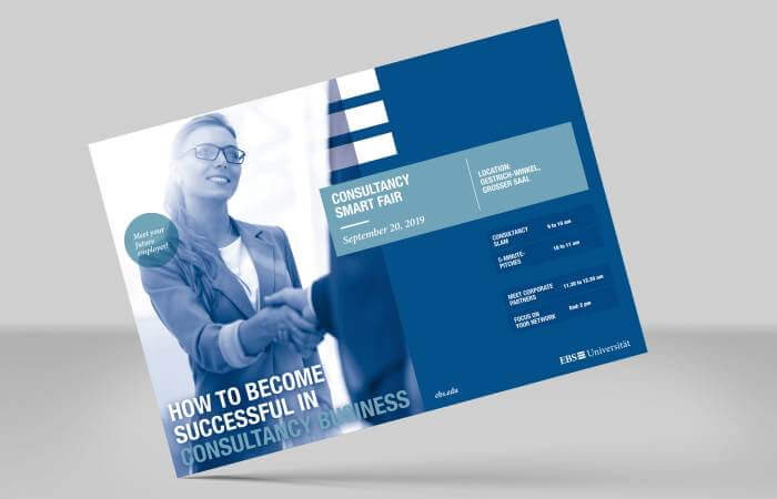 Facelift von vielen wichtigen Print-Werbematerialien der EBS-Universität. Durch einen hochwertigen Look und eine klare Sprache soll der Premiumcharakter der EBS hervorgehoben und neue Studenten gewonnen werden.